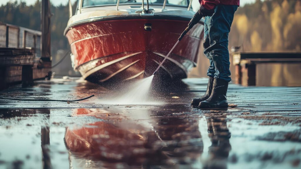 Protect your boat dock from buildup with specialized pressure washing, removing algae, grime, and dirt to preserve its beauty.