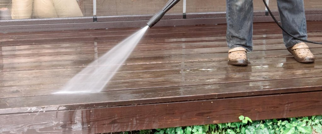Preserve your wooden deck’s appearance with pressure washing that eliminates dirt, mildew, and stains, restoring its natural beauty.